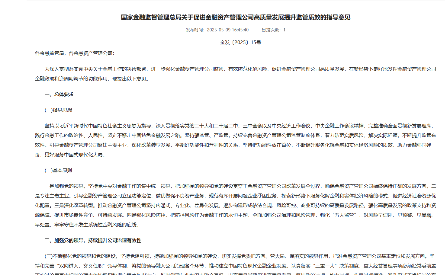 国家金融监督管理总局关于促进金融资产管理公司高质量发展提升监管质效的指导意见