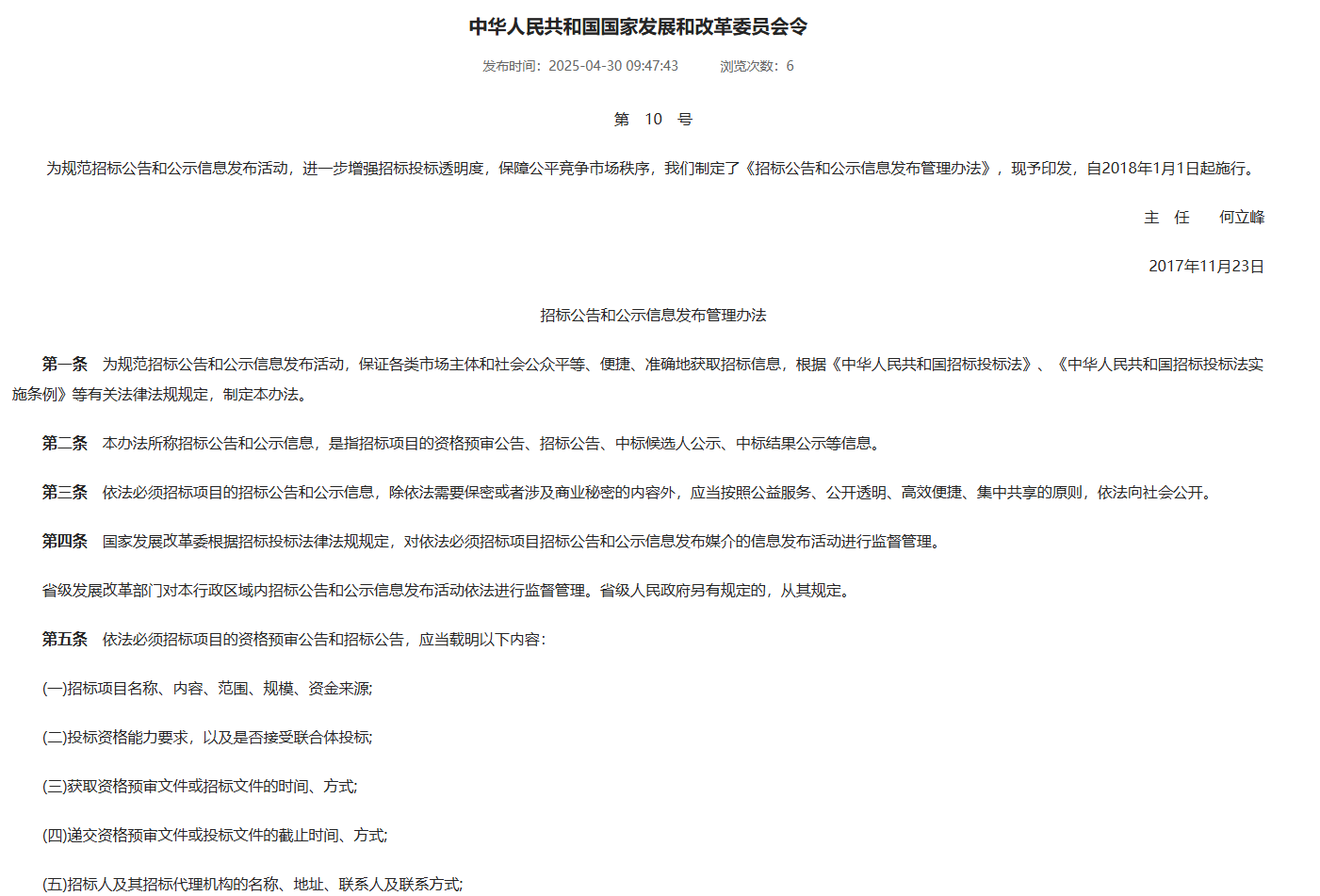 招标公告和公示信息发布管理办法